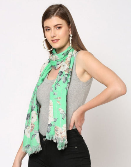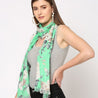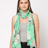 Women Green & Cream-Coloured Sequins Floral Printed Scarf